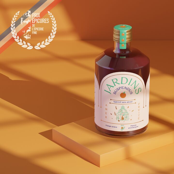 Jardins Suspendus est un apéritif d’exception sans alcool bio. Il est confectionné au cœur de la touraine à partir d’orange amère et de romarin. Jardins Suspendus s’inspire des meilleurs apéritifs amers italiens pour un apéritif sans alcool amer et fruité, bio et français ! En bouche, la puissance de l’orange amère est complétée par la fraîcheur et la vivacité du romarin. Jardins Suspendus se déguste en cocktail allongé avec du tonic ou de l’eau pétillante pour sa version ‘spritz’.` La recette pour un spritzs sans alcool : 1/3 de Jardins Suspendus + 2/3 de tonic ou d’eau pétillante + et quelques glaçons ! Son aromatique saura convaincre les palais les plus exigeants. Une bouteille de Jardins permet de réaliser une vingtaine de Jardins Spritz. Jardins Suspendus a reçu le prix épicures d’argent en juin 2022.