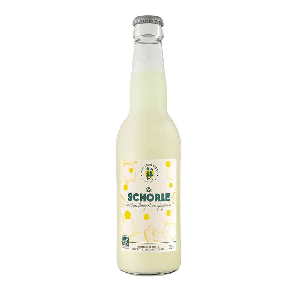 Commençons par un peu de phonétique, prononcez tout simplement : le {chorle} Bon ça ne vous en dit pas plus sur ce que c’est ? Et bien c’est un mélange subtil et gourmand de fruits et d’eau légèrement pétillante ! Des boissons sans alcool, 100% naturel, sans arômes ni conservateurs. Chez les Filles de L’Ouest, les fruits sont méticuleusement sélectionnés, on privilégie les méthodes de production artisanale et les filières courtes et bio. Le Schorle citron-gingembre est l’accord parfait entre le citron jaune sicilien et le citron vert brésilien ! Bio, relevé d’une pointe de gingembre naturel, un vrai coup de boost ! Le Citron Fringant vous séduira par son élégance en bouche ! Chaque ingrédient a été dosé avec grande finesse et attention.