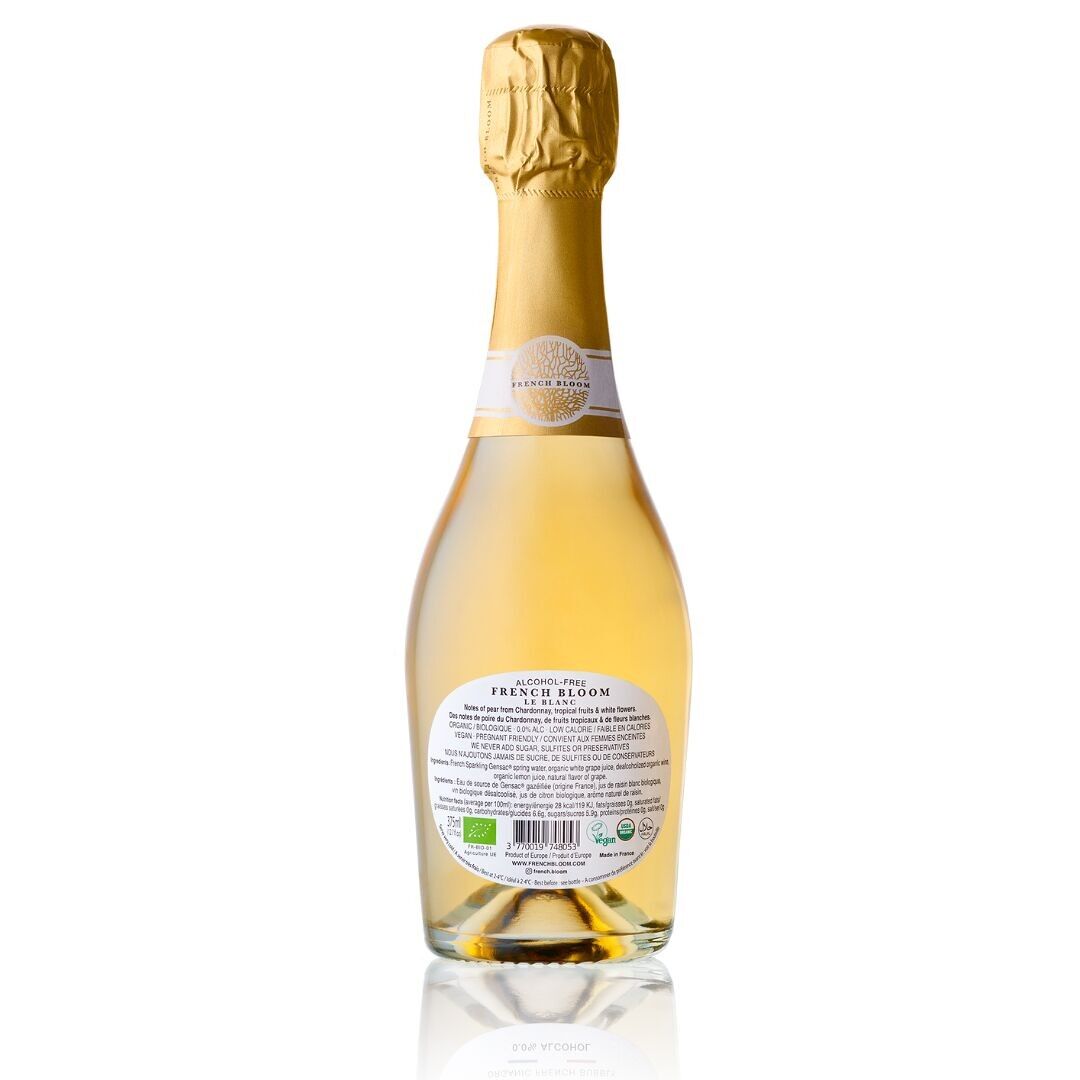 French Bloom est ravi de vous offrir la même expérience exceptionnelle que ses boissons a base de vin désalcoolisé effervescentes dans un emballage plus petit. Ces trésors de 375 ml sont parfaits pour les moments où vous désirez une plus petite quantité, plus intime, de notre exquis effervescent français sans alcool.Cette boisson à base de vin désalcoolisé effervescente, créée et embouteillée dans le Sud-Ouest de la France, est l’essence même de la célébration, parfait pour les moments les plus mémorables de la vie pour ceux qui désirent faire la fête sans limites ni frontières, de manière élégante, différente et inclusive.Le Blanc offre une fraîcheur minérale, les arômes de poire et les notes tropicales évoluent vers ceux de la pomme Granny Smith, d’agrumes légèrement épicés et de fleurs blanches.